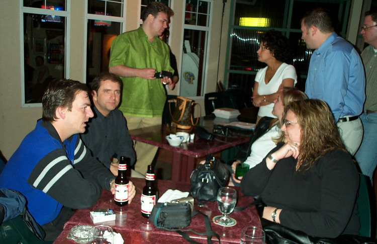 Brian, Ken (Tara's husband), Enzo (Angela's husband), Angela, Mike's wife, Wendy (Brian's wife), Mike and Nigel.