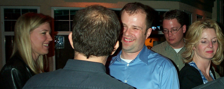 Shelly (Mike J.'s wife), Ken (Tara's husband, with his back to the camera), Mike, Nigel and Sarah (Pete's wife).